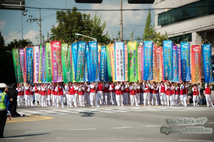 어설프게 두마리의 토끼를 다 잡아보려다 결국 다 놓치고 말았는데 한마리만 쫓으면 과연 잡을 수 있었을 까 생각해봐도 답이 없는 것 같다. 행사의 처음 시작부터 본 것인지 약간 의문이긴 한데…(밥을 먹고 오느라) 어쨌든 첫 시작은 승마 경찰과 각 동을 대표하는 기수들로 시작을 했다.