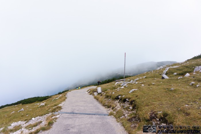 밑에선 날씨가 좋았는데, 위로 올라가니 허거거걱 앞이 잘 보이지 않을 정도로 안개가 심했다. 바람도 무지불고 무지무지 추웠다. 나의 그녀는 안추울까? 추운데도 상태가 괜찮네. 아직까지 립오브 비엔나 약발이 먹고 있다. 도대체 여기 해발 몇미터야(검색하니 2060미터라네. 한라산보다 높다)