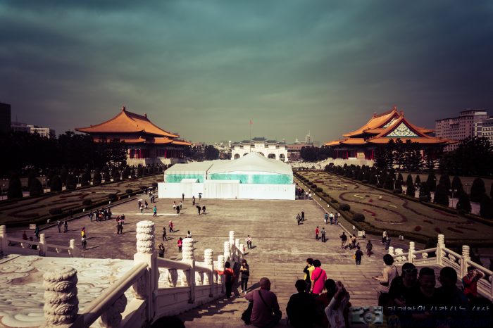 중정기념당의 꼭대기는 타이완의 국기 마크가 세겨져 있었다.