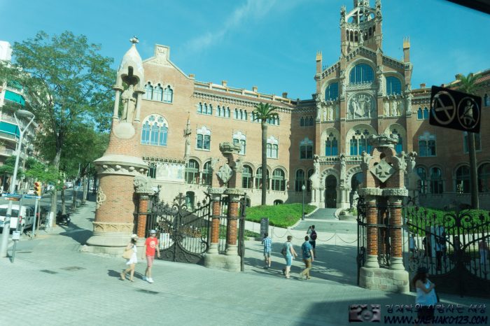 구엘공원을 나서서 버스내에서 잠시 산파우 병원 옆을 (사람들이 볼 수 있게 천천히) 지나간다.