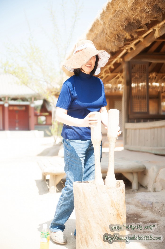 어머니, 절구통 앞에서 포즈 좀 취해주세요…